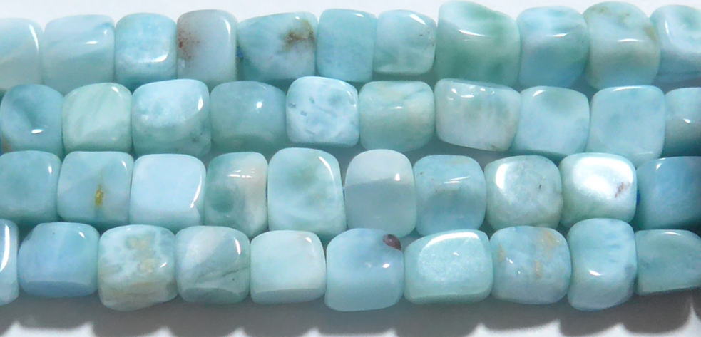 愛と平和、過去におこった辛い出来ことによる心の負担の開放、穏かさや無条件の愛と調和をもたらす。心にたまった負担の解消にも。よく茶色〜白に変色する事があるが、それはトラブルや心にたまった負担を吸っているからといわれています。所々に見られる茶味は、カリブの海のように澄んでいる青みとあいまって、まるで人間の心を移しているかのようにみえます。名前の由来は、産出者の娘「ラリッサ」と美しいカリブの海「マール」
